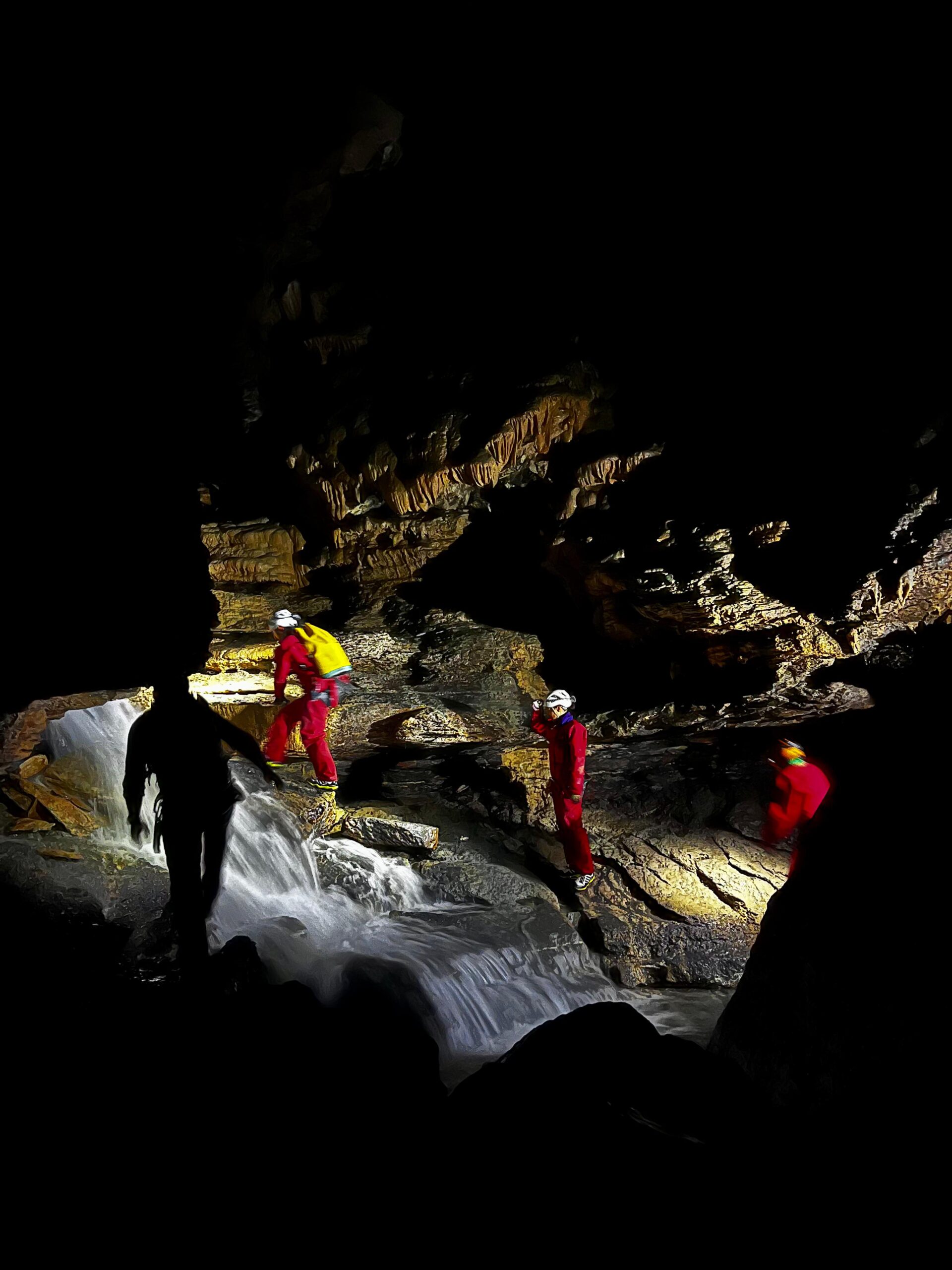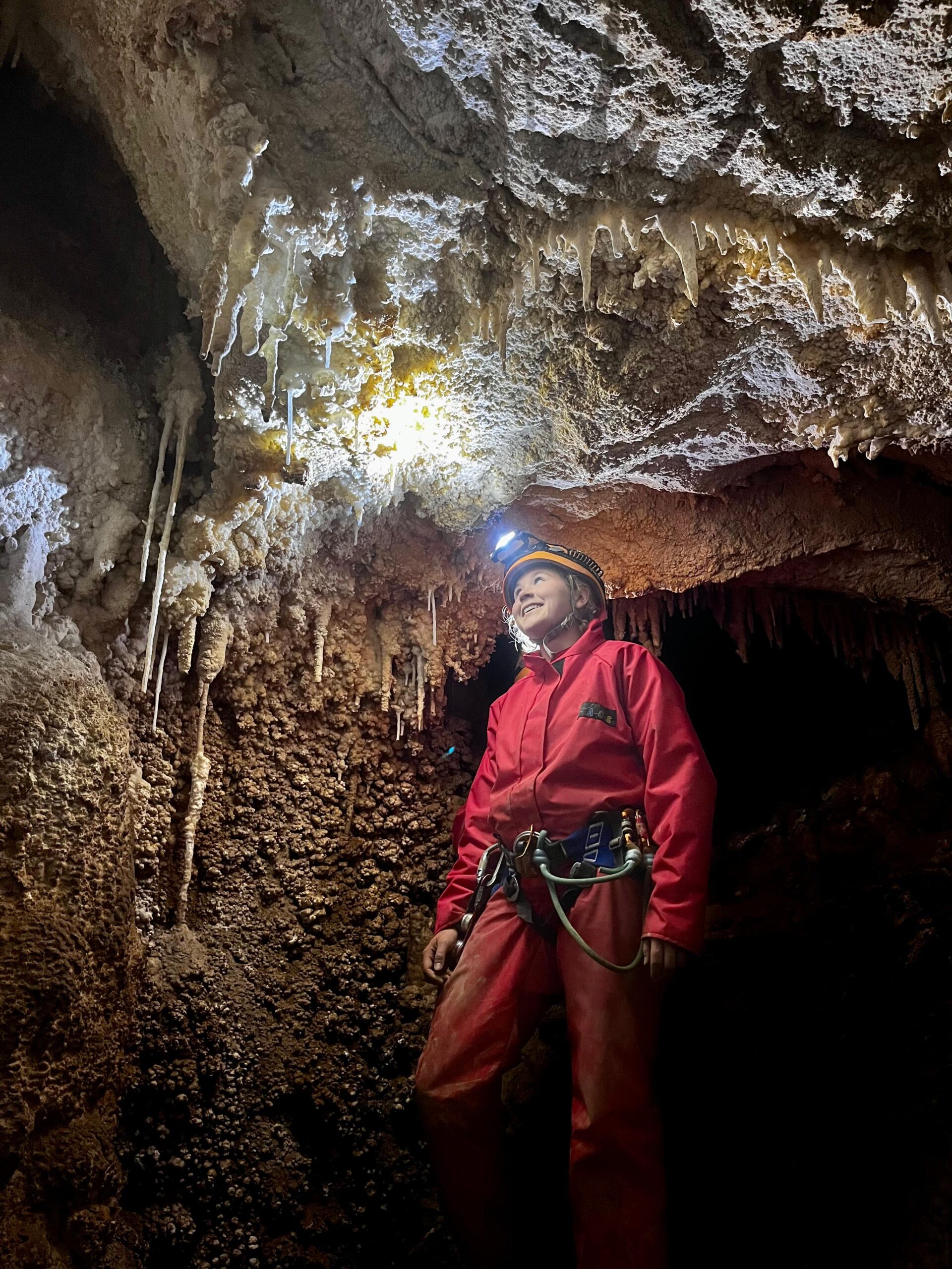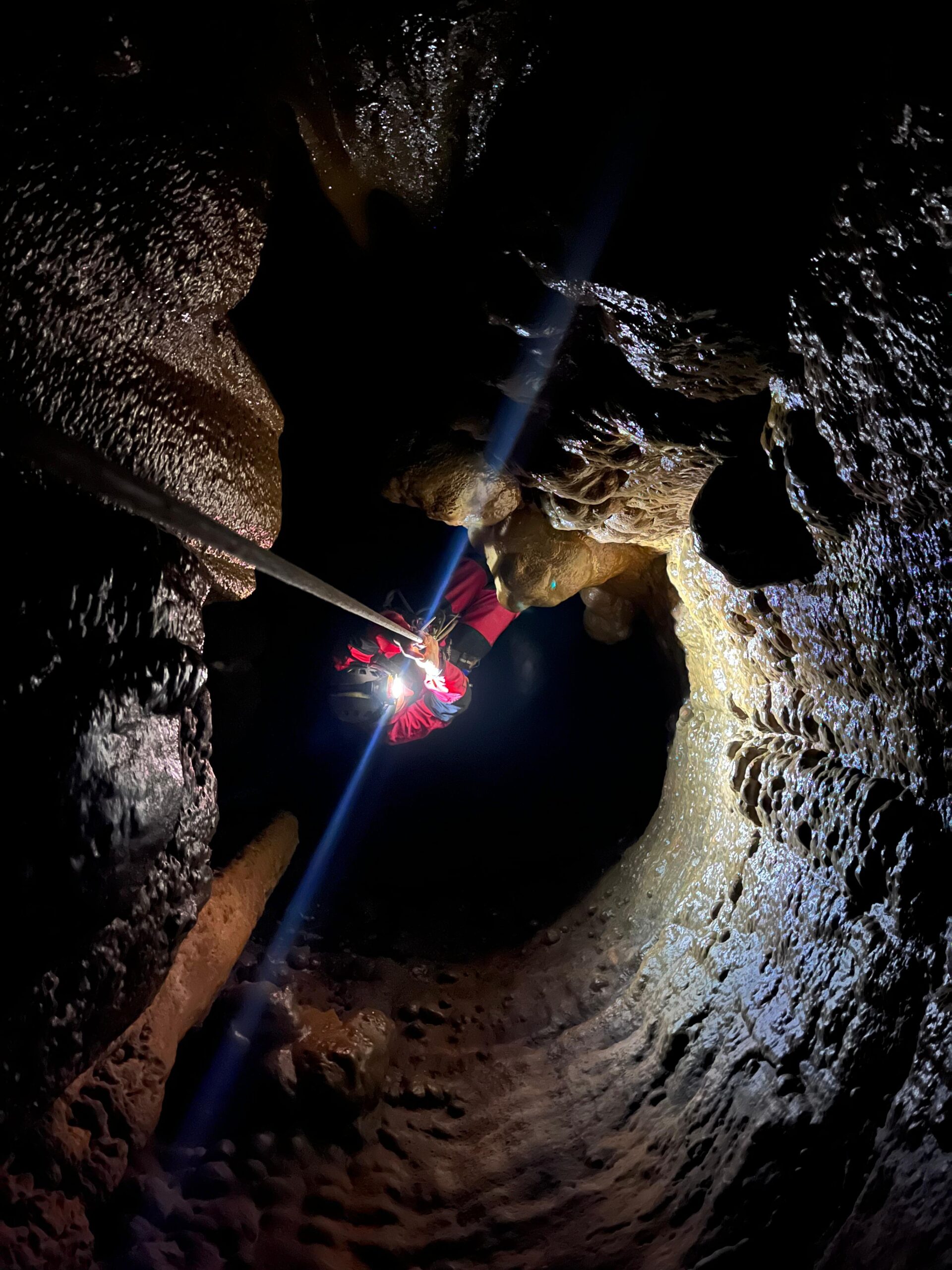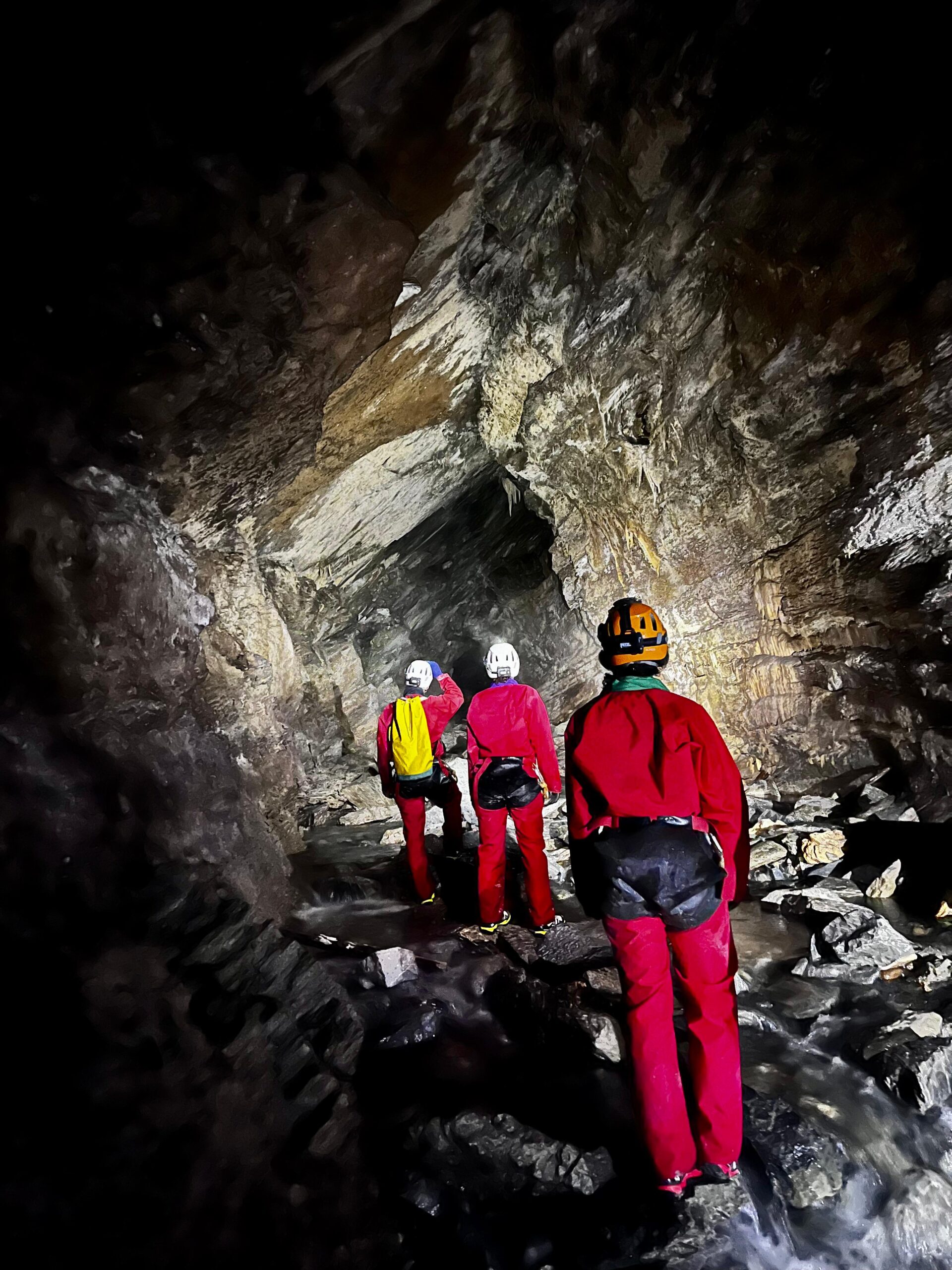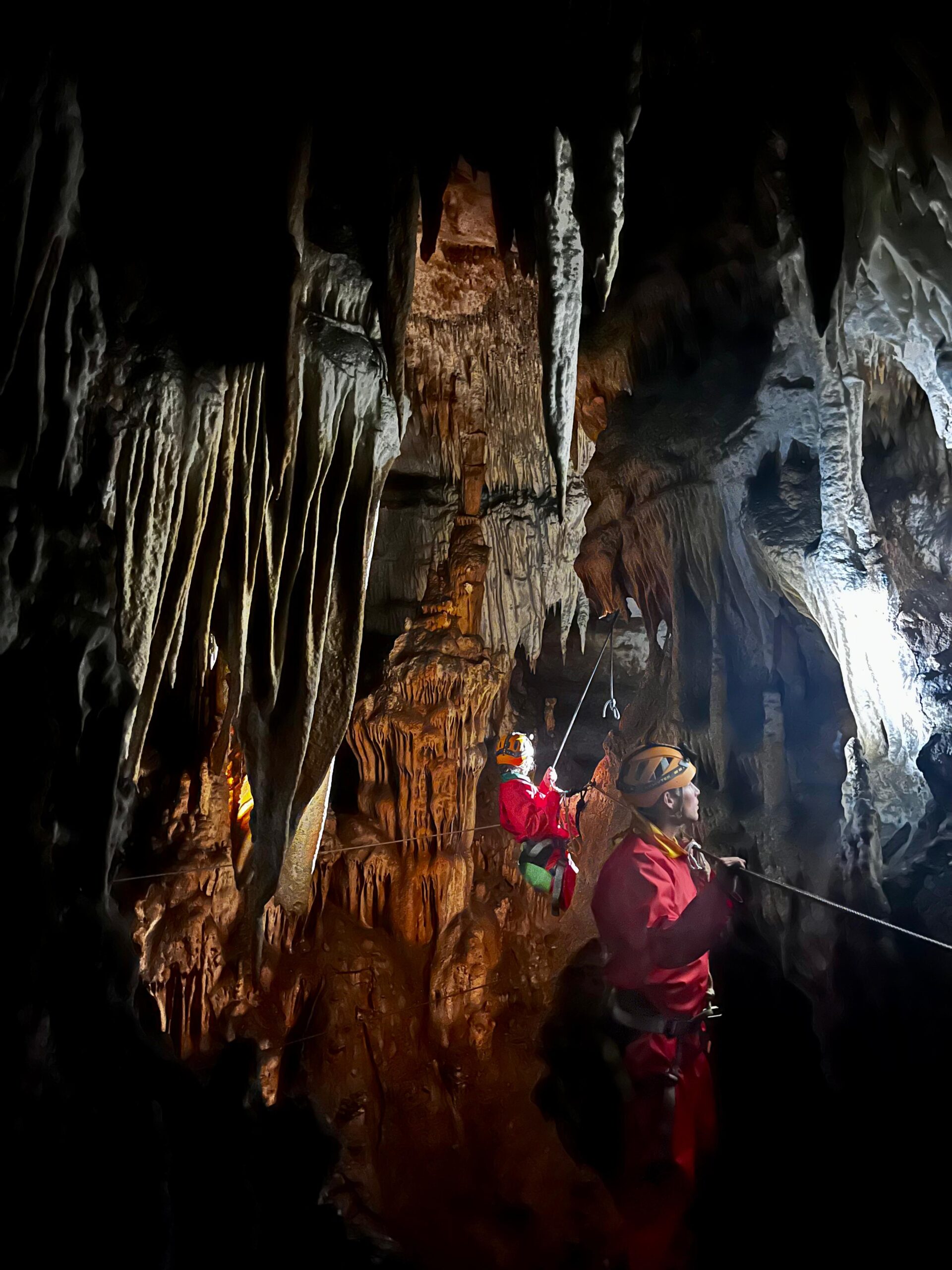 Nous prendrons un peu de hauteur afin de découvrir les plafonds de la grotte et de nous confronter à une première expérience de la verticalité. Lors de notre visite nous rencontrerons plusieurs descentes en rappel (hauteur maximale de 10 mètres). Le moniteur prendra le temps de vous livrer tous ses secrets sur la descente en rappel afin que vous profitiez au mieux de cette dernière. Nous alternerons passage encordé et marche dans la grotte entrecoupé de petites escalades et désescalades. Quelques passages étroits mais très ponctuels seront présents sur le parcours.