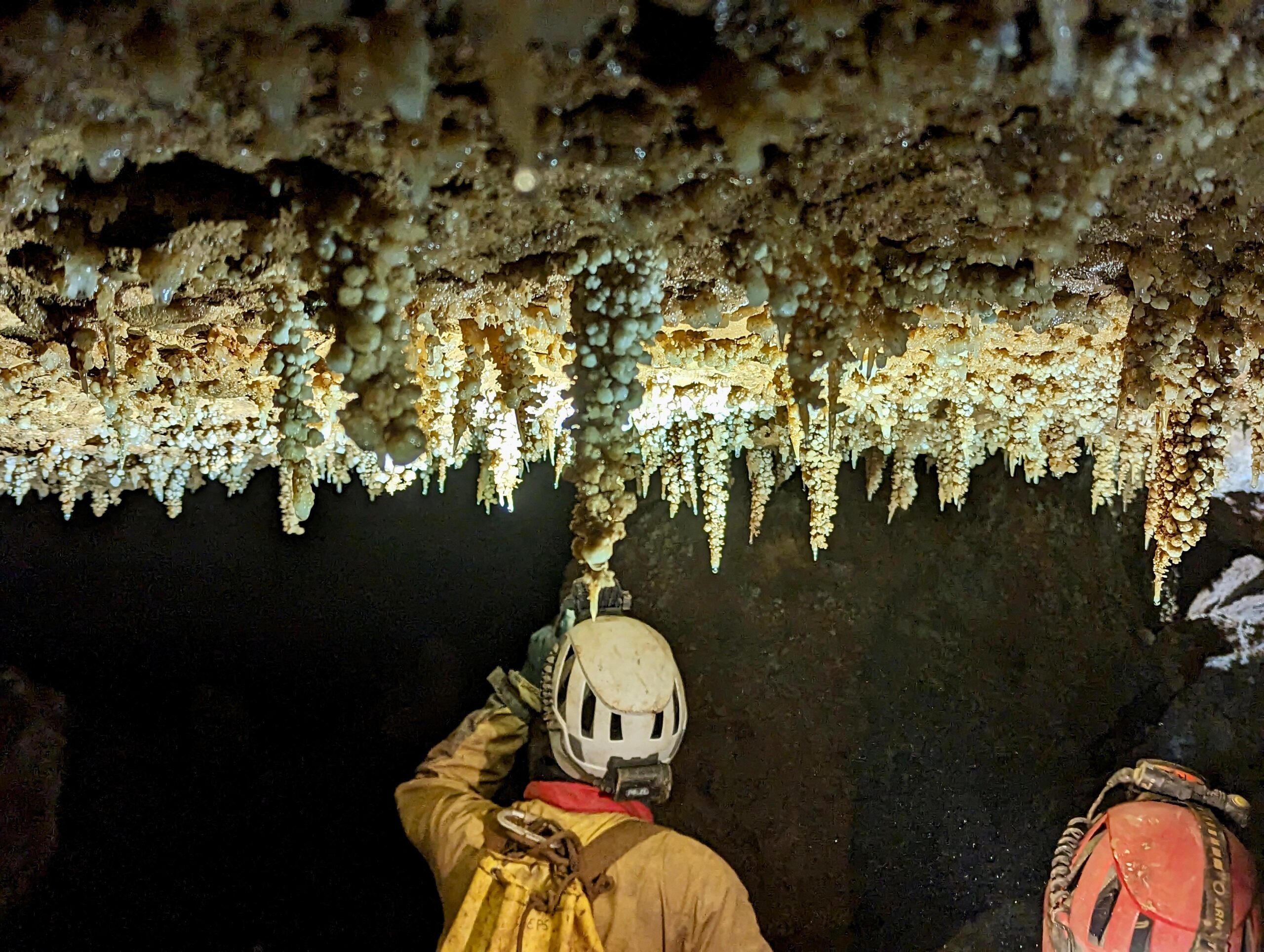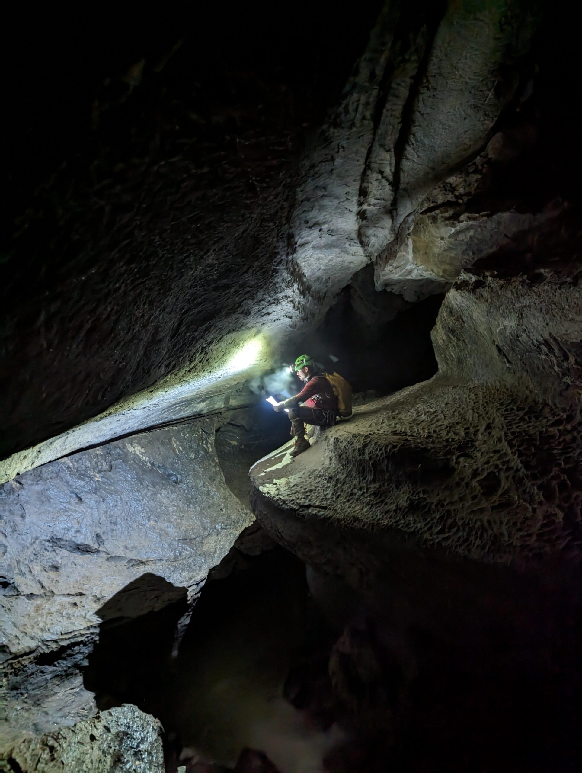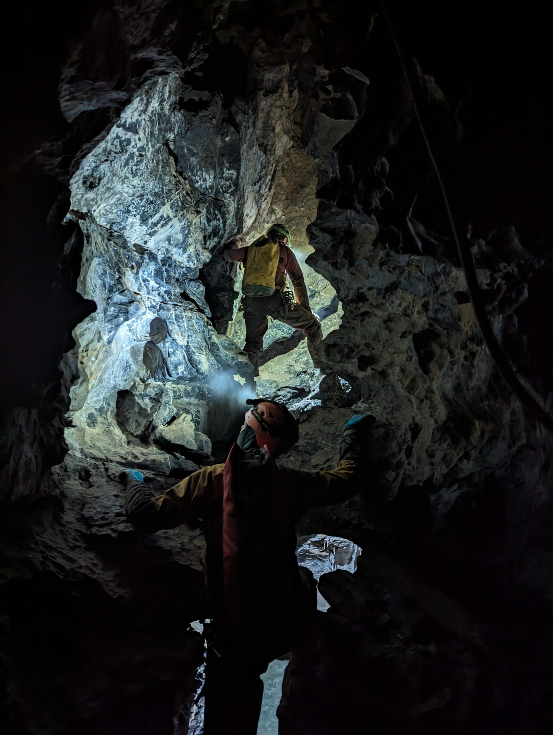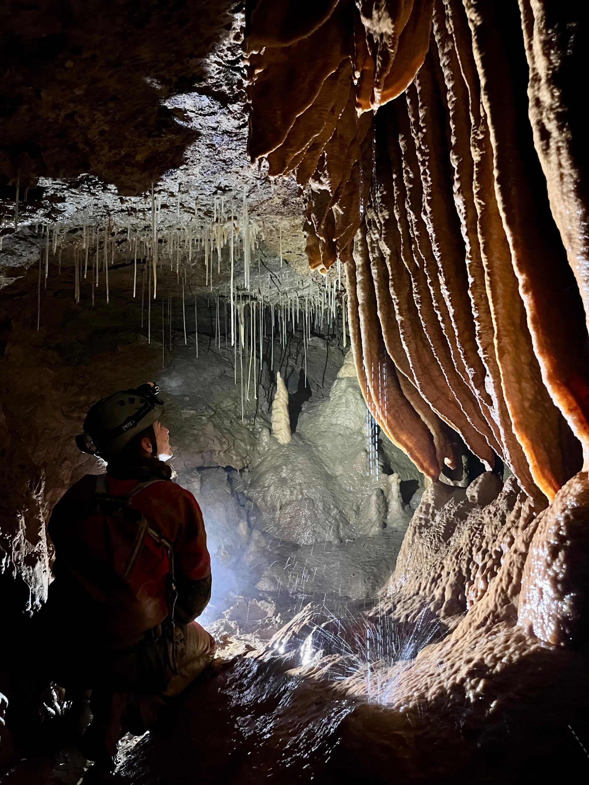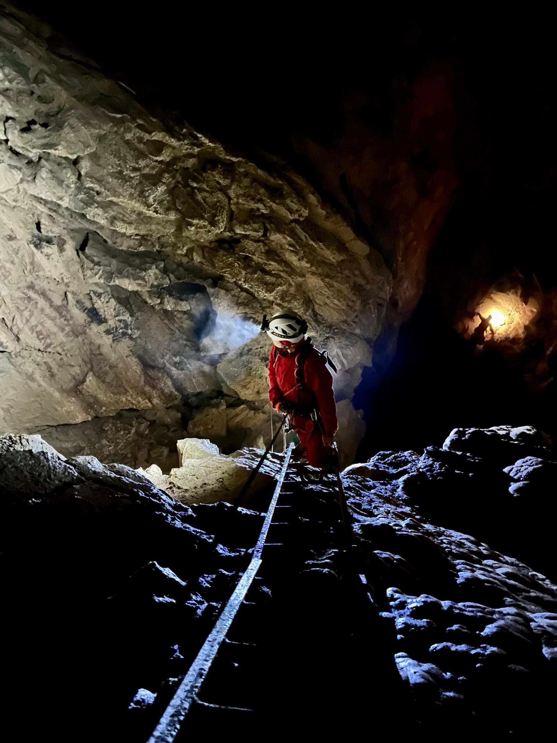 Nous prendrons un peu de hauteur afin de découvrir les plafonds de la grotte et de nous confronter à une première expérience de la verticalité. Lors de notre visite nous rencontrerons plusieurs descentes en rappel (hauteur maximale de 10 mètres). Le moniteur prendra le temps de vous livrer tous ses secrets sur la descente en rappel afin que vous profitiez au mieux de cette dernière. Nous alternerons passage encordé et marche dans la grotte entrecoupé de petites escalades et désescalades. Quelques passages étroits mais très ponctuels seront présents sur le parcours.